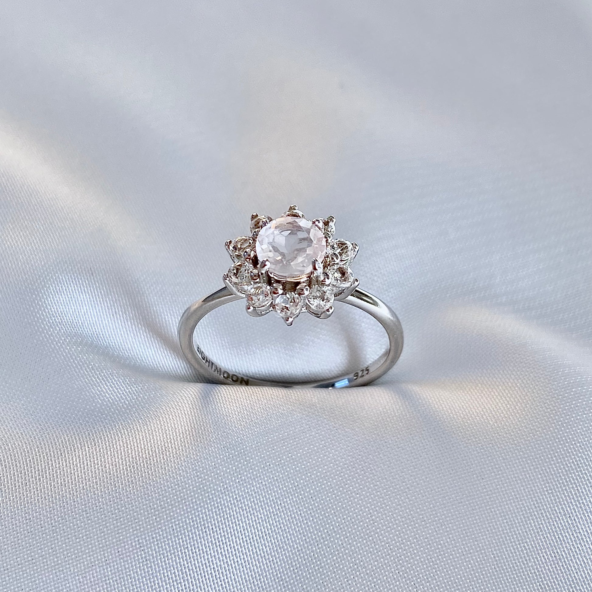 Halo Rose Quartz Sterling Silver Ring